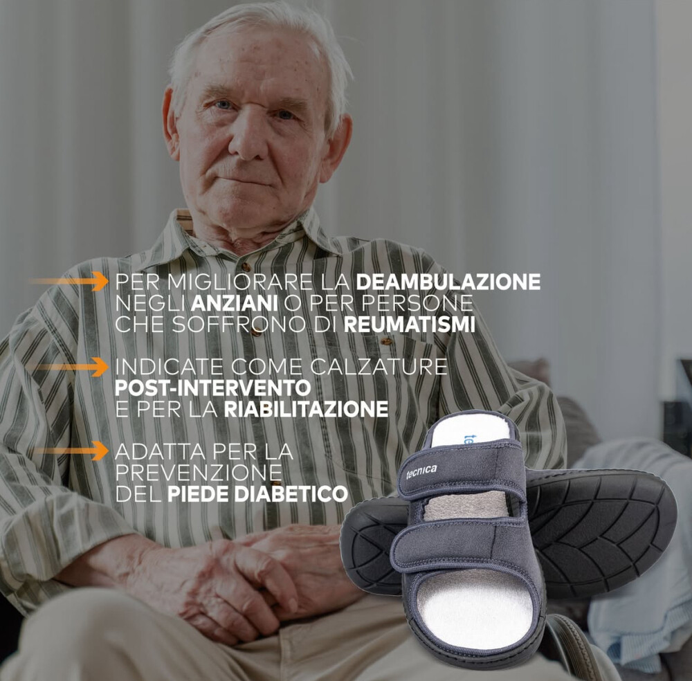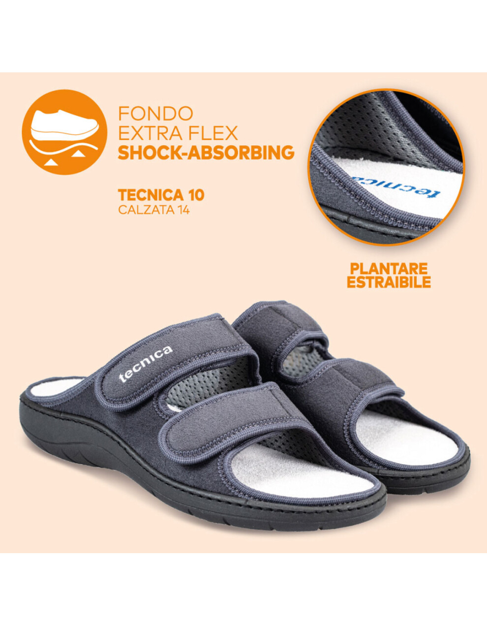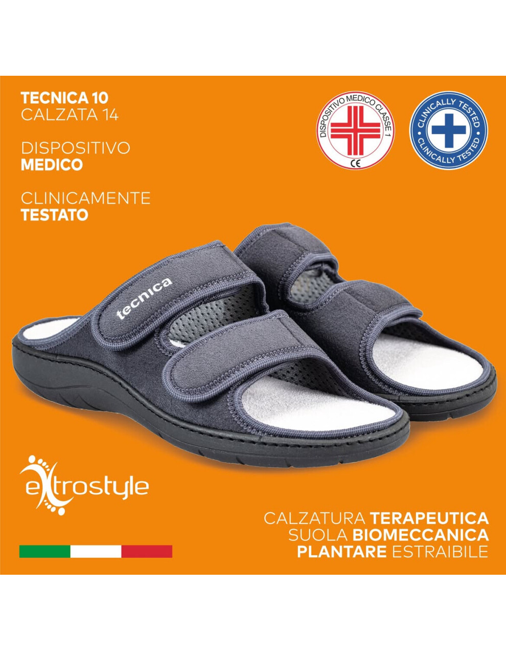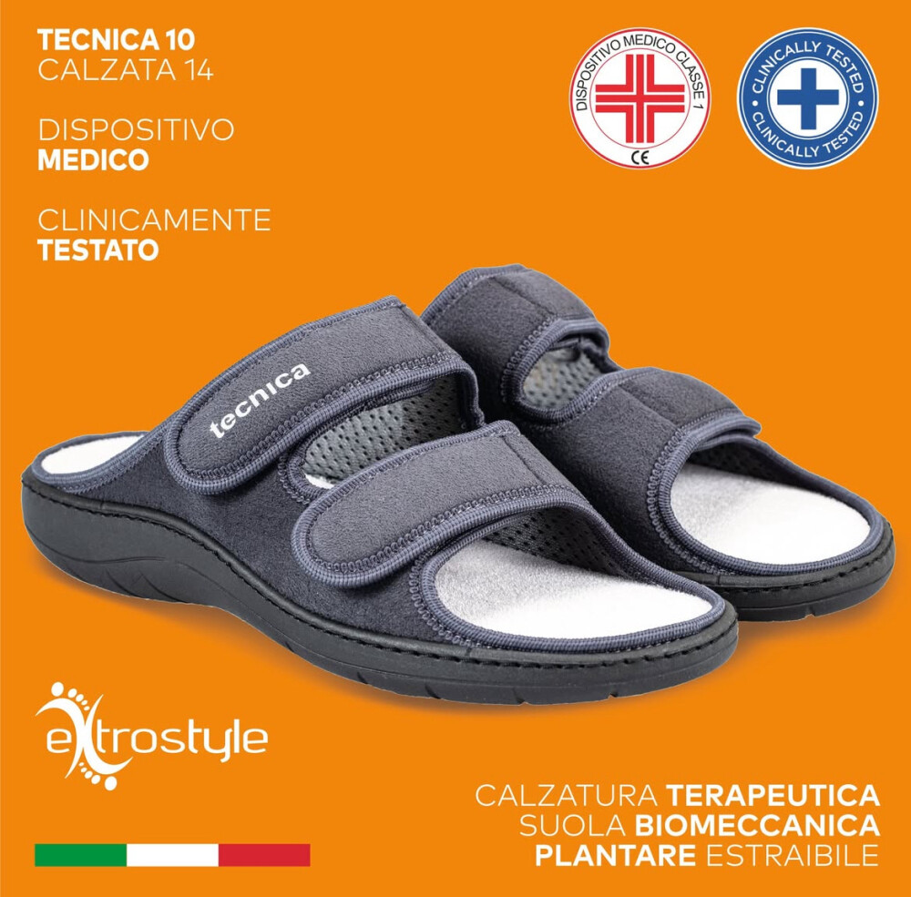 Ortopedski copat T10 je enostavno nositi, lahek in idealen za tople dni. Copati so izredno mehki in stabilni. Dva mehka in široka velcro trakova, ki se zapreta na nartu omogočata udobno namestitev tudi za zelo otečena stopala. Copate je možno uporabljati tudi za otečena, široka ali povita stopala. Podplat je šivan, nedrseč in stabilen, vložek v copatih je izredno mehak (S-air), odstranljiv in pralen. Copati so namenjen vsem z občutljivimi ali problematičnimi stopali. Copati se lahko perejo na 40 stopinj. Narejeni 100% v Italiji. Copati so certificirani (MD).