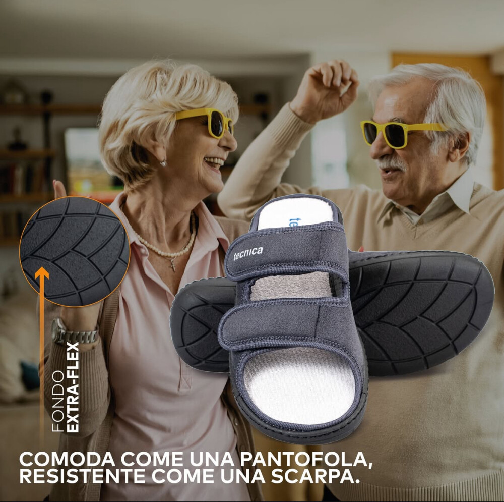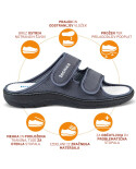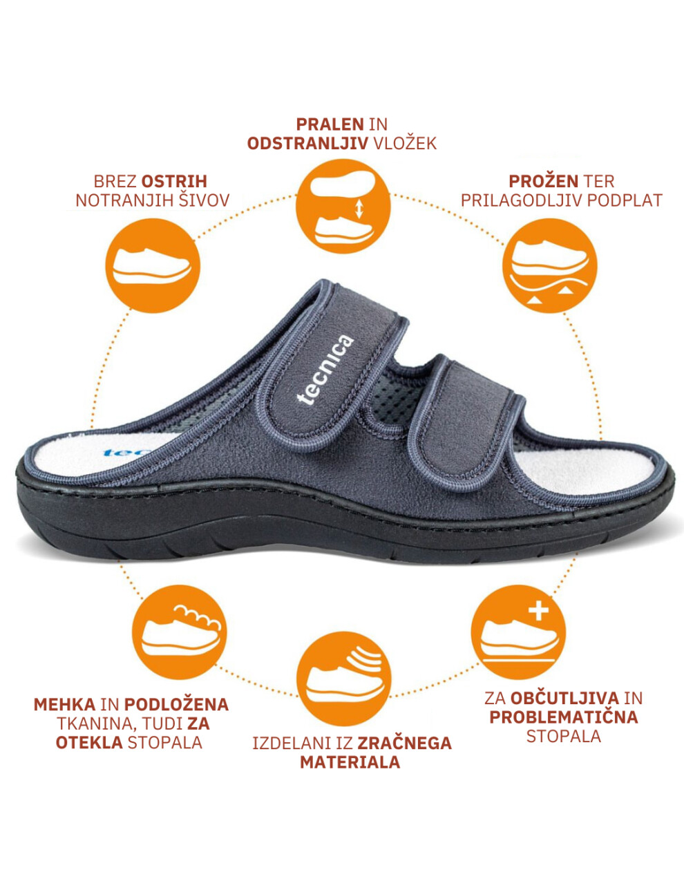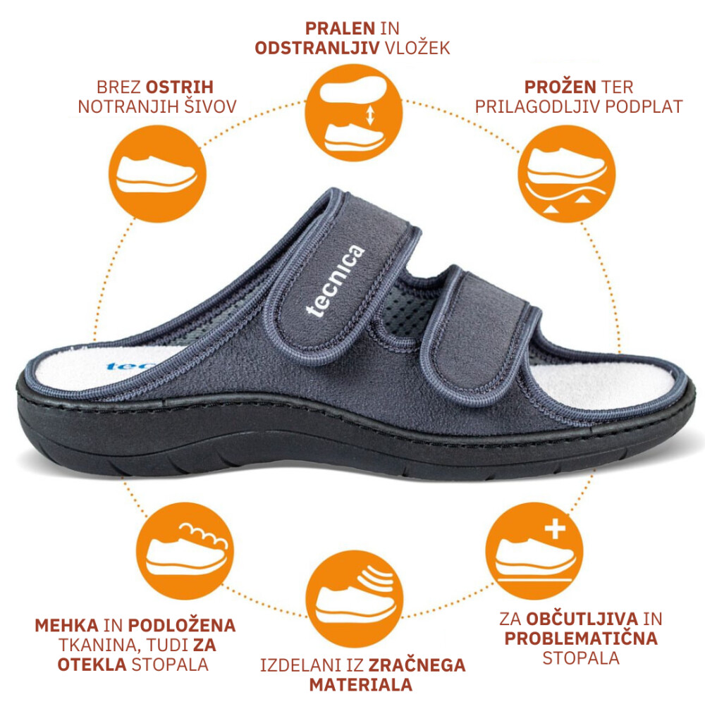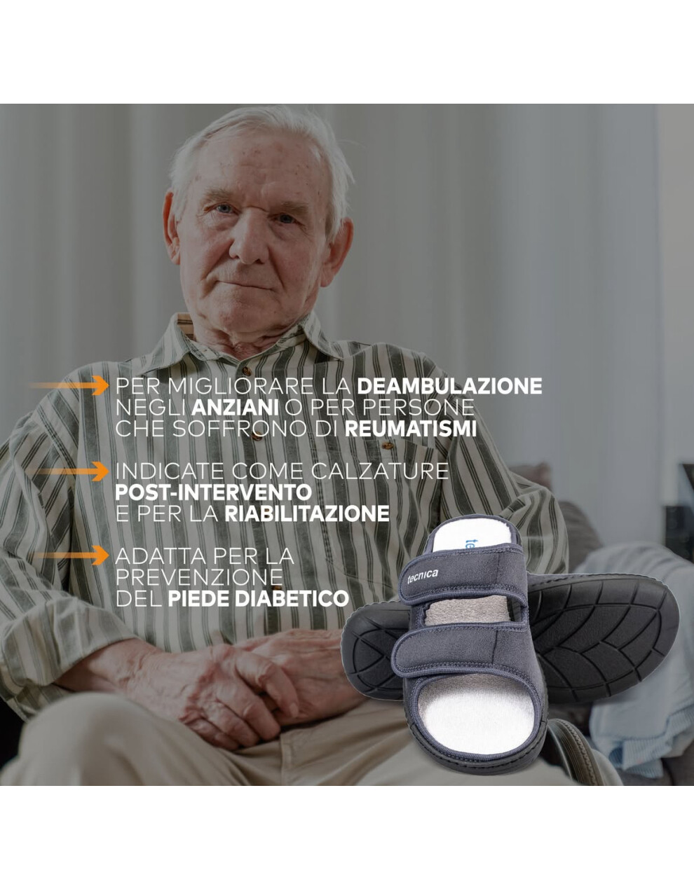 Ortopedski copat T10 je enostavno nositi, lahek in idealen za tople dni. Copati so izredno mehki in stabilni. Dva mehka in široka velcro trakova, ki se zapreta na nartu omogočata udobno namestitev tudi za zelo otečena stopala. Copate je možno uporabljati tudi za otečena, široka ali povita stopala. Podplat je šivan, nedrseč in stabilen, vložek v copatih je izredno mehak (S-air), odstranljiv in pralen. Copati so namenjen vsem z občutljivimi ali problematičnimi stopali. Copati se lahko perejo na 40 stopinj. Narejeni 100% v Italiji. Copati so certificirani (MD).