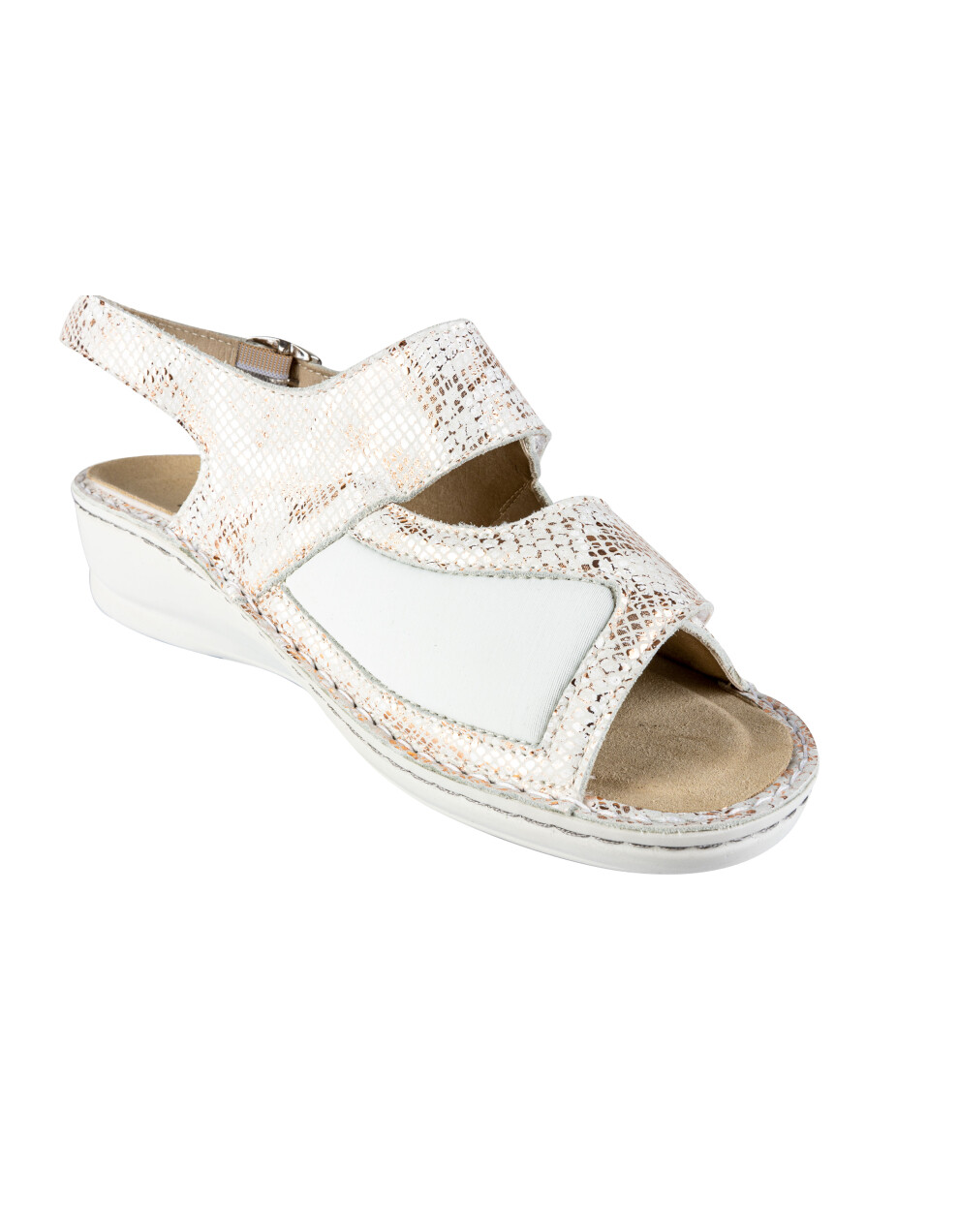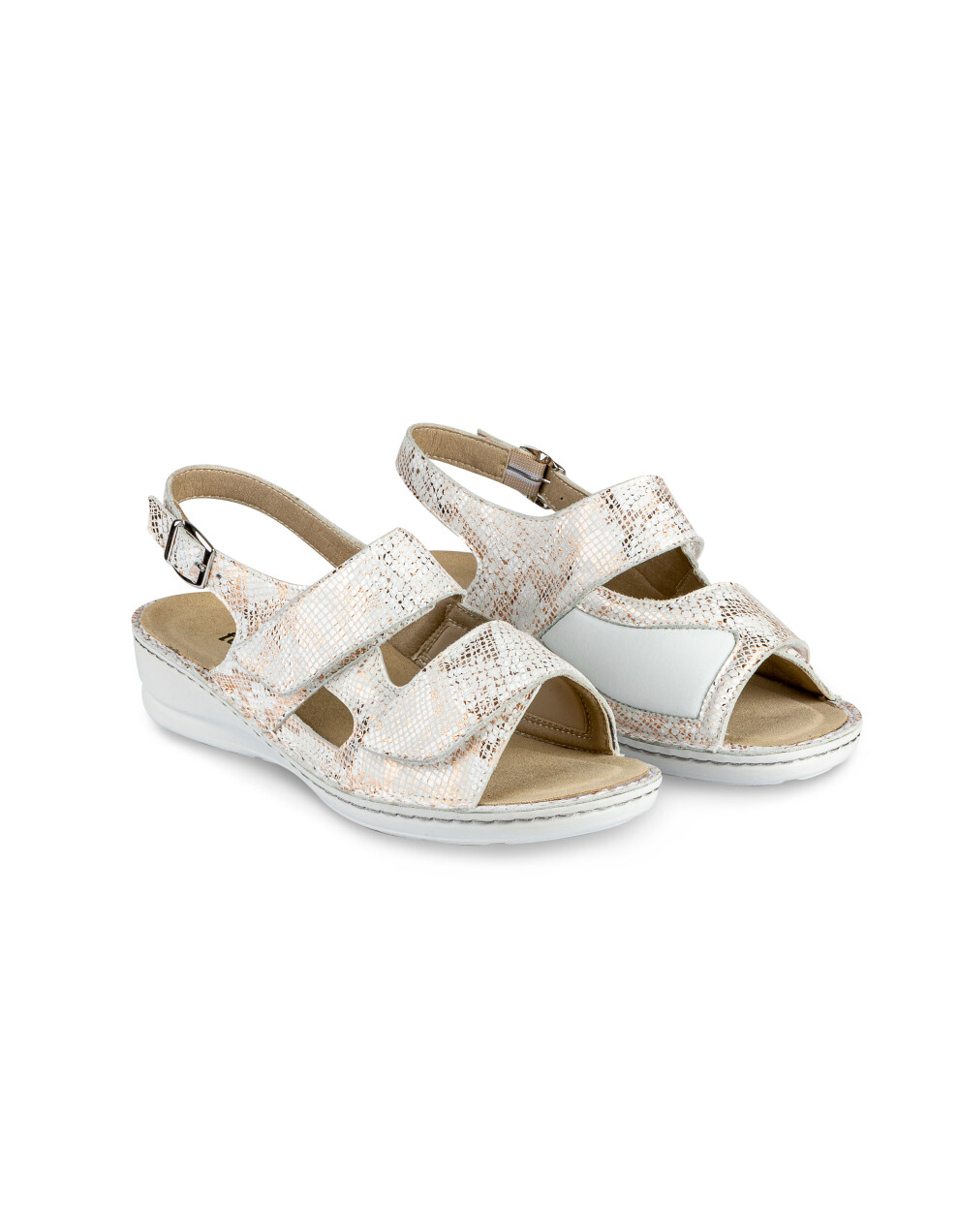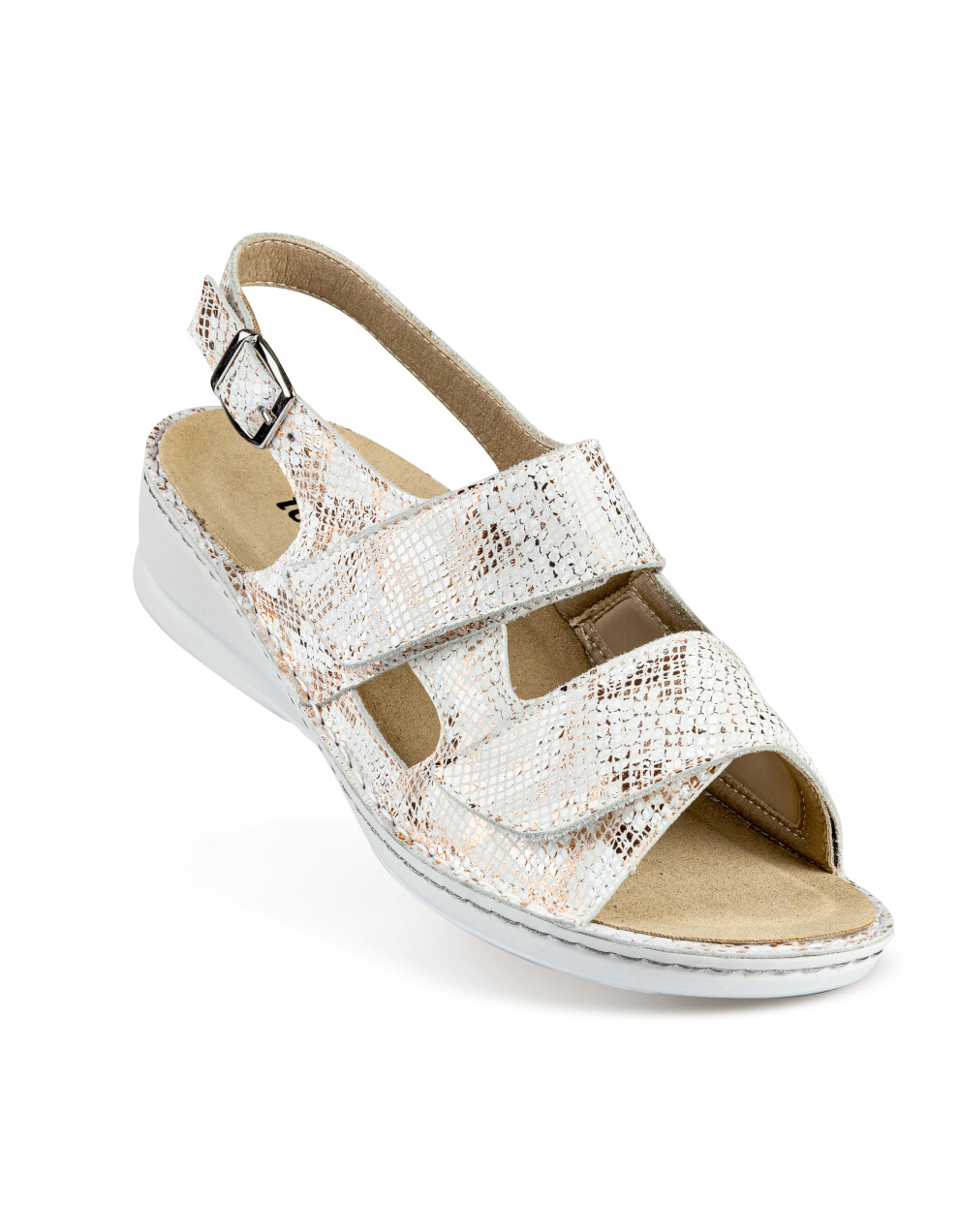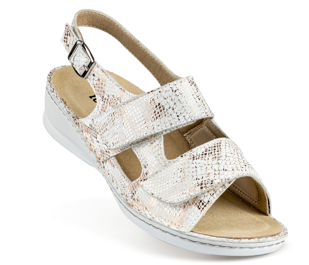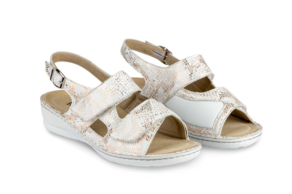 Sandali so narejeni iz prvovrstnega usnja in mikrovlaken ob notranji strani za mehkejši oprijem ter težave z HALLUX VALGUSOM oz. izbočeno kostjo z dvojno šivanim podplatom ter z možnostjo menjave vložka. Deluje antibakterijsko, absorbira vonj in diha. Odlikuje jih izredna kakovost, nedrseč podplat, mehkoba, lahkotnost ter privlačen in moderen dizajn.