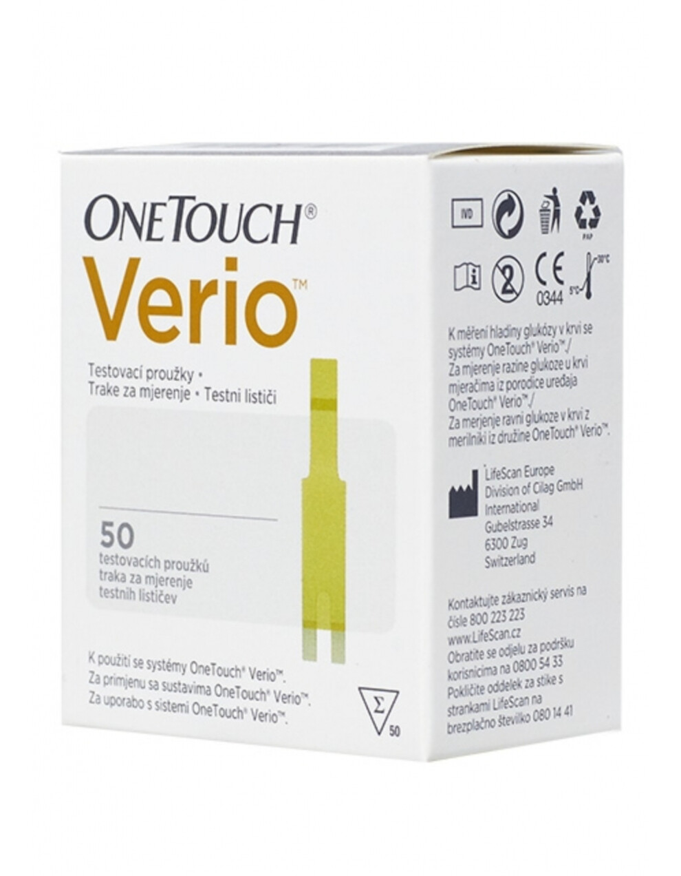 One touch Verio testni lističi se uporabljajo za merjenje sladkorja v krvi. Uporabljajo se z merilnikom ravni glukoze v krvi OneTouch Verio in OneTouch Verio Flex.