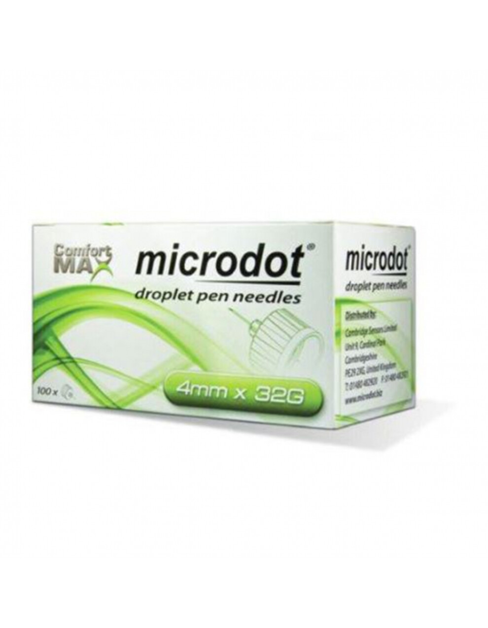 Microdot igle 4mm x 32G so sterilne igle za insulinske injekcije. Namenjene so enkratni uporabi in potrebno jih je odstraniti z injekcijskega peresnika po vsaki uporabi, da se prepreči vstop zraka v karpulo in uhajanje insulina iz karpule. Posvetujte se z zdravnikom ali farmacevtom glede izbire ustrezne dolžine iglic, tipa iglic in tehnike injiciranja.