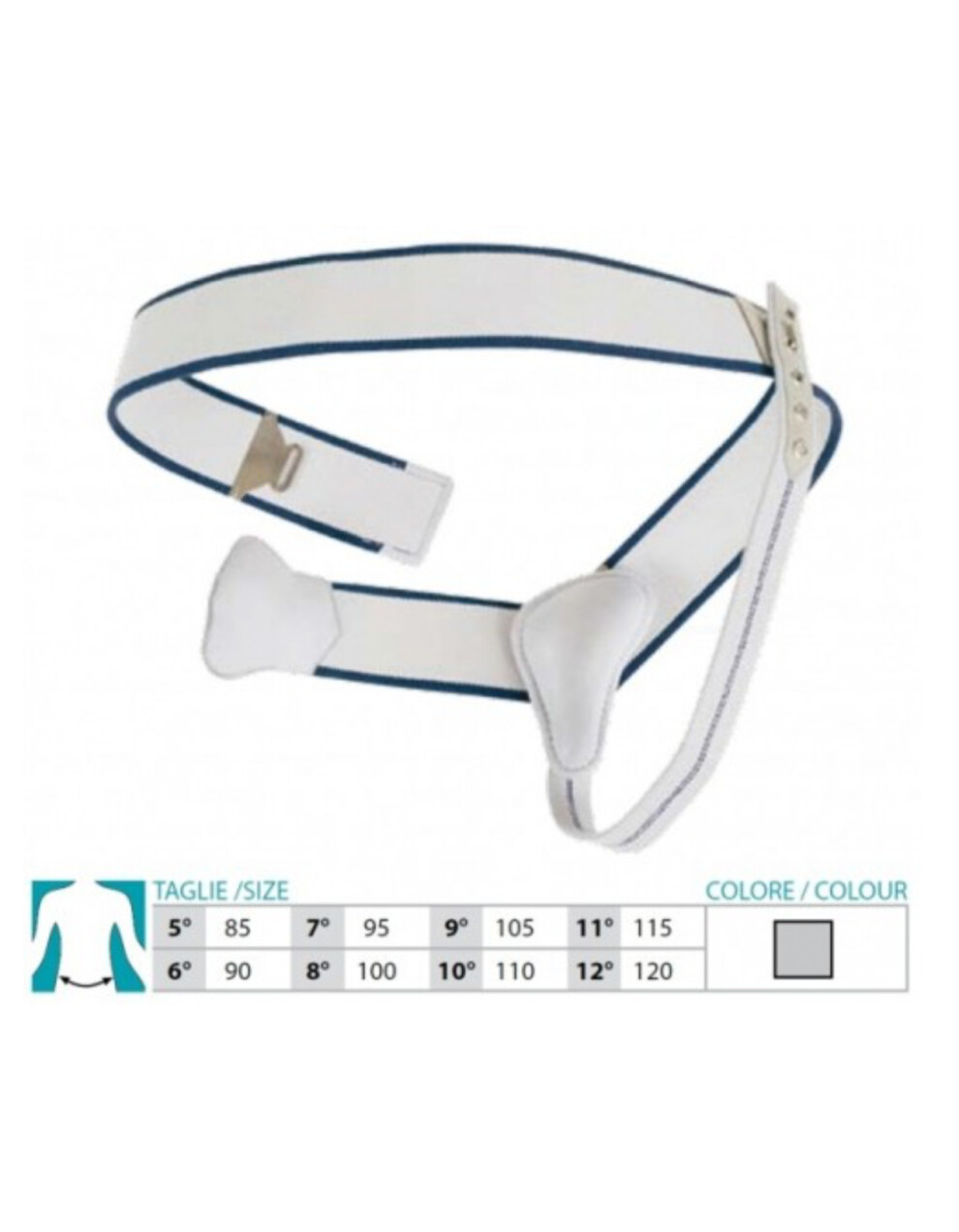 Pas za kilo ima nastavljiv elastični trak okrog pasu in prilagodljive trakove za dimlje, zapenjanje pelote iz usnja na pasu. INDIKACIJE: - enostranska ingvinalna kila - enostranska dimeljska kila