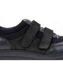 Obutev je primerna tudi za težave s stopali, kot so hallux valgus, kladivasti prsti, revmatična stopala in druge težave. Zapira se z dvema velcro trakovoma. Posebej primerni so za problematična stopala, otekla stopala in za tiste, ki morajo vstaviti prilagojeni korektivni vložek. Odlično in udobno tudi za vsakodnevno nošenje za pogosto stoječe delo ali za daljše sprehode. Zapira se z dvema velcro trakovoma.