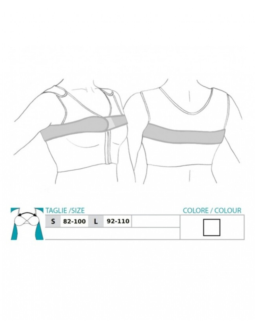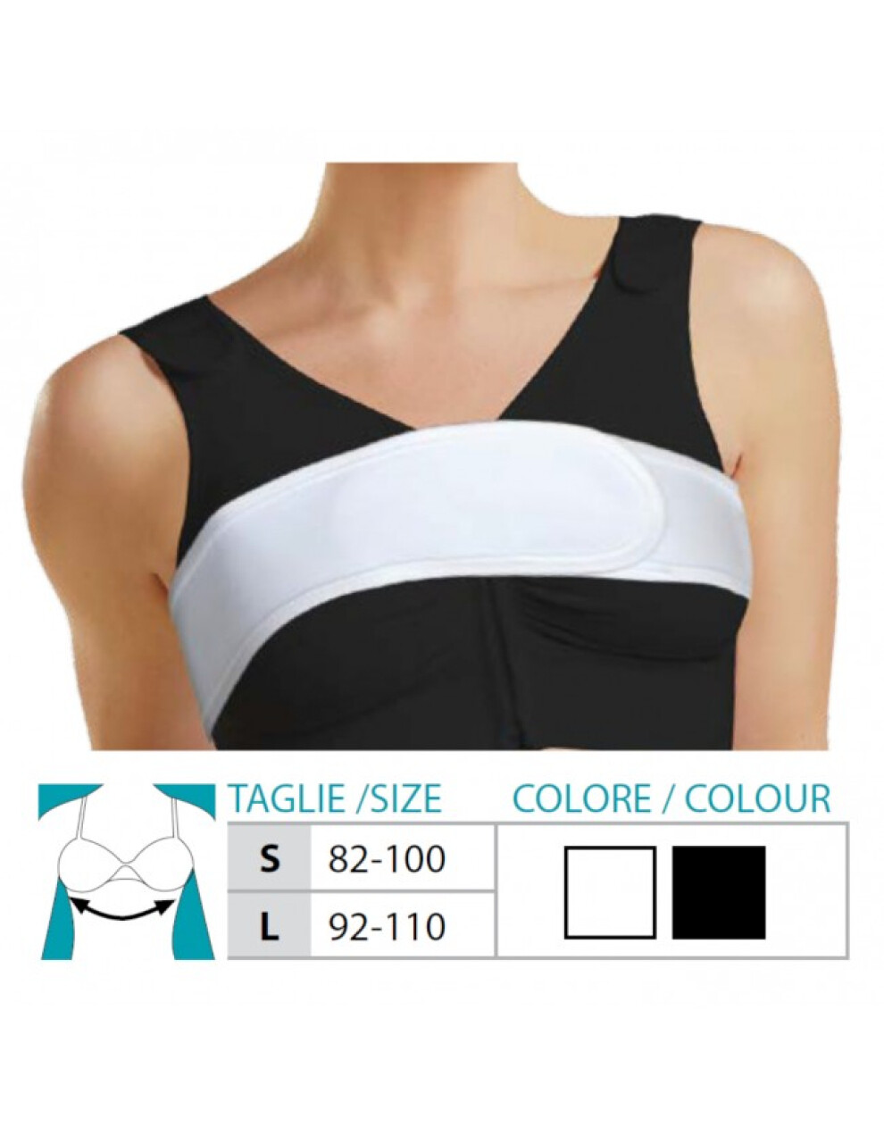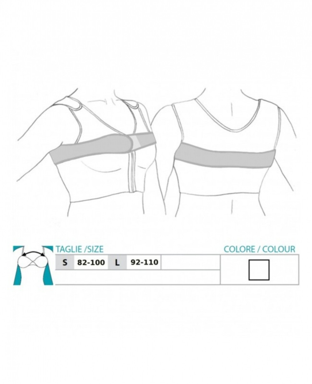 Posebno je namenjen za nošenje s kompresijskim nedrčkom z zadrgo spredaj, art. 9652. Priporočljiv je tudi z ostalimi postoperativnimi nedrčki linije Orione. Izdelan v Italiji, Safte S.p.A.