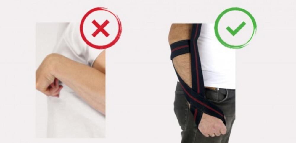 - varuje roko, da ostane v addukciji.