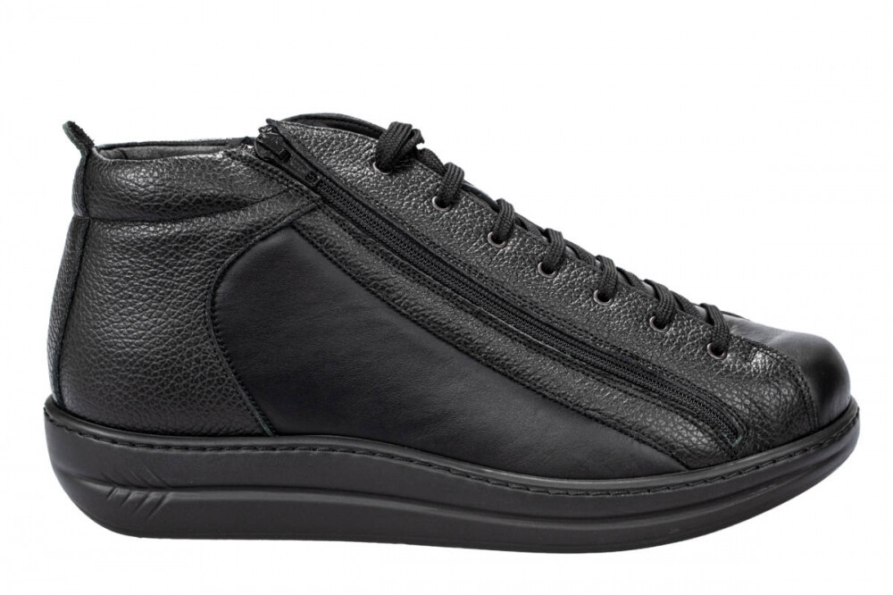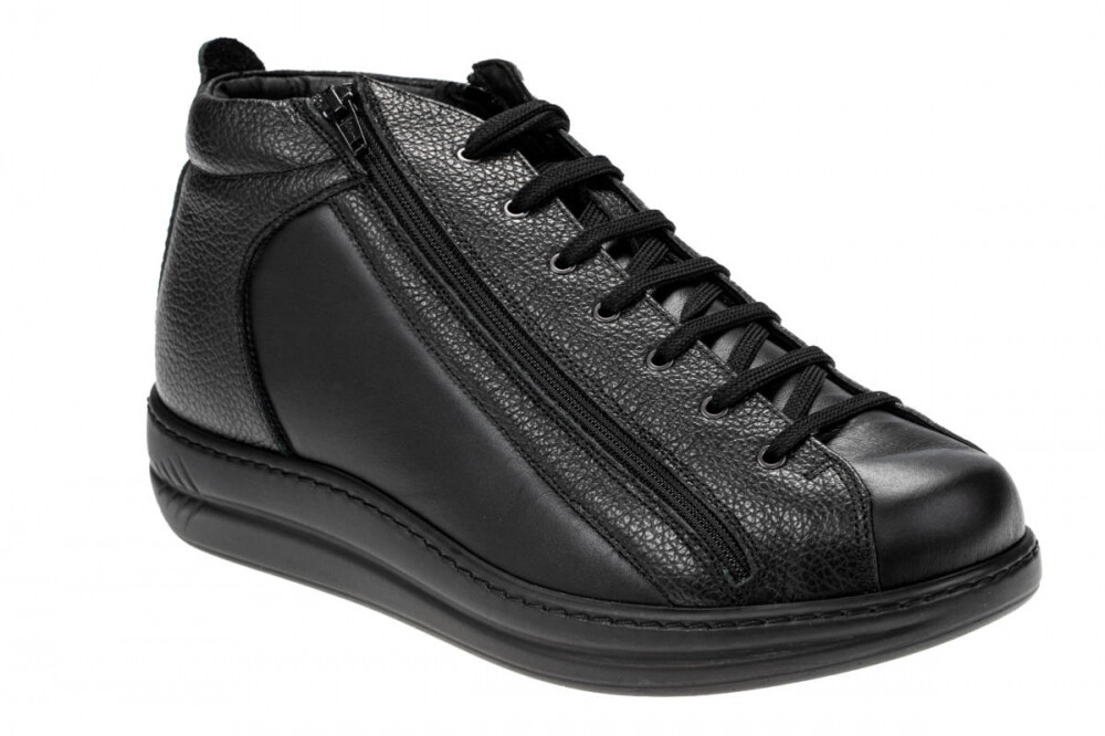 Elegantna obutev Energy Daniele višja, je primerna za težave s stopali, kot so hallux valgus, kladivasti prsti, revmatična stopala in druge bolezni. Obutev nima notranjih šivov, zaradi česar je izjemno udobna in primerna za občutljiva, visoka in široka stopala. Zapira se z vezalkami, ter dvema zadrgama ob straneh.