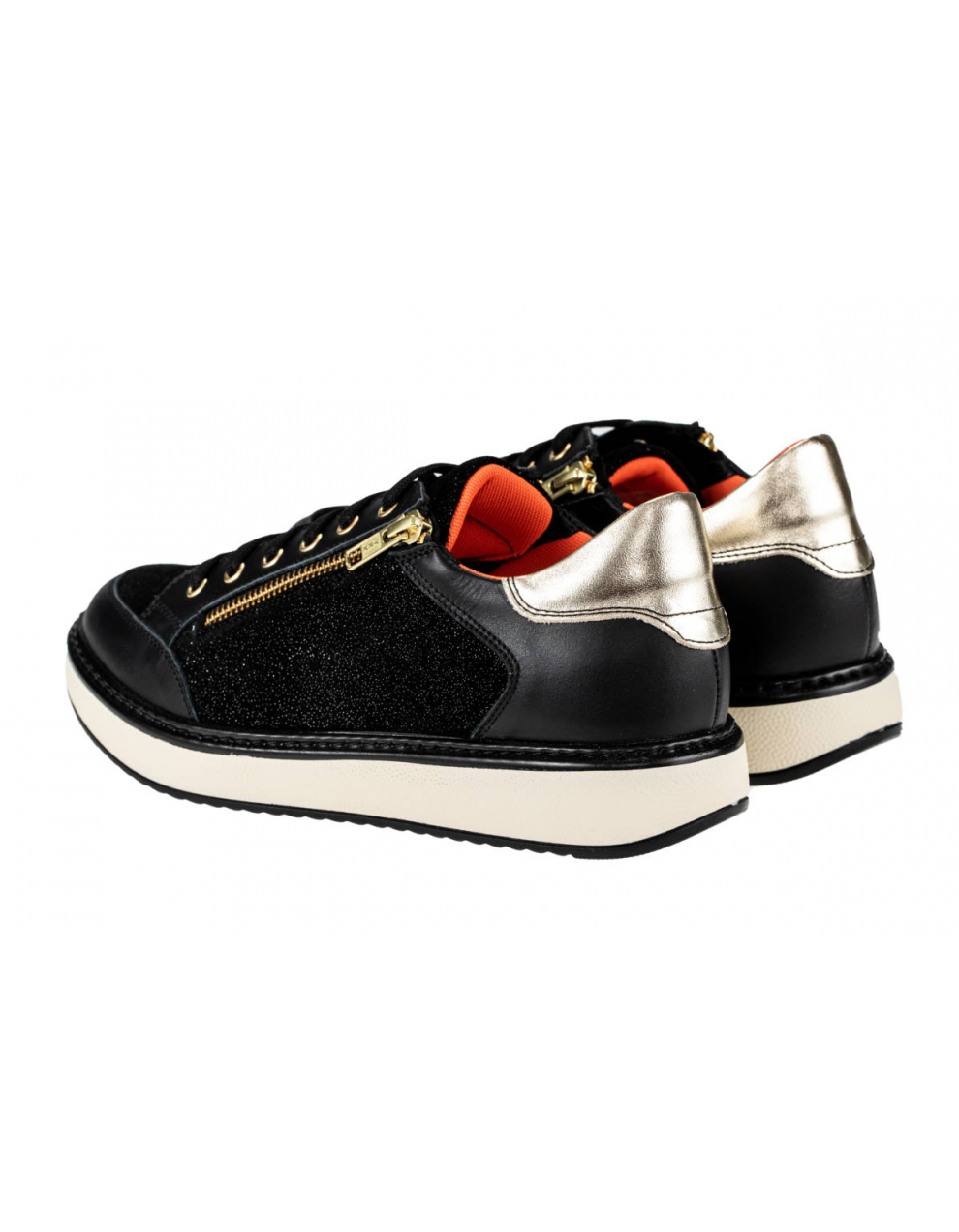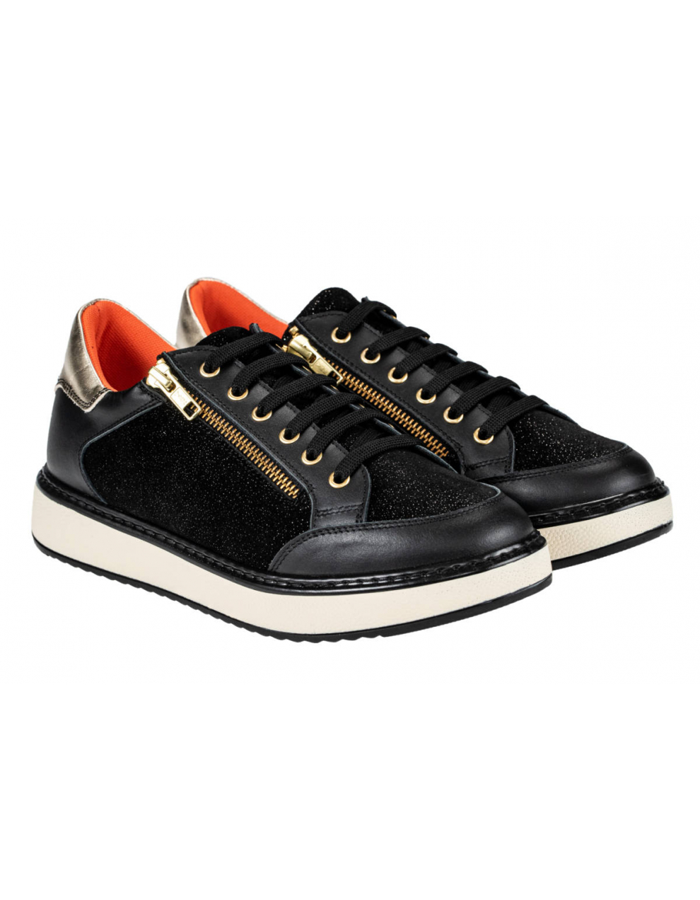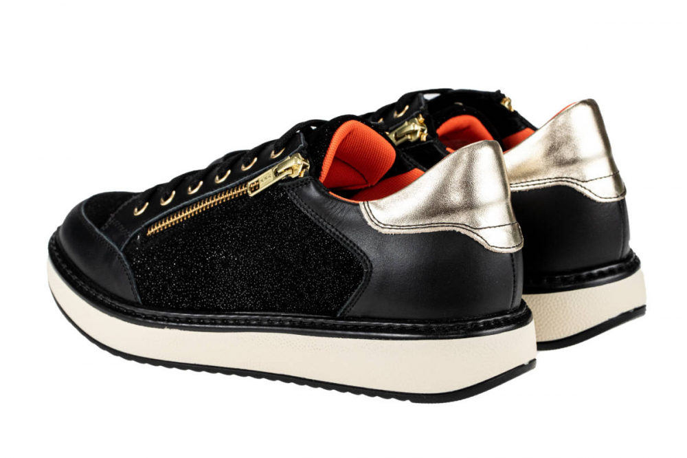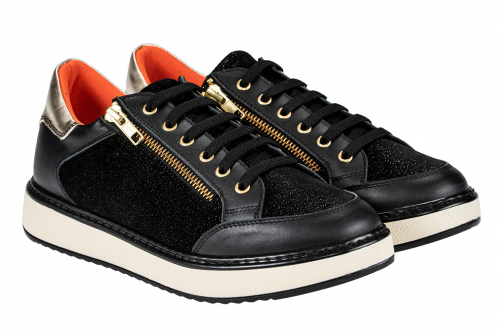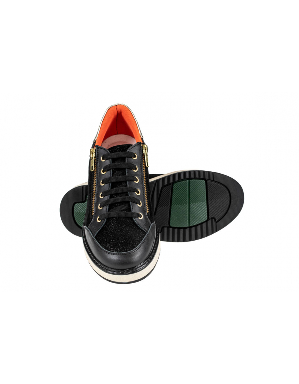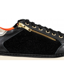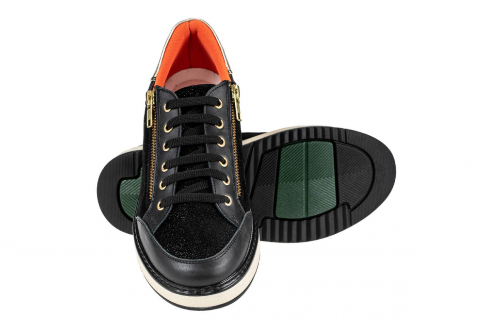 Elegantna obutev Enna črno/zlati, je primerna za vsa občutljiva stopala ter tudi za težave s stopali, kot so hallux valgus, kladivasti prsti, revmatična stopala, diabetično stopalo in druge bolezni. Obutev nima notranjih šivov, zaradi česar je izjemno udobna in primerna za občutljiva, visoka in široka stopala. Zapira se z vezalkami, ter dvema zadrgama ob straneh.