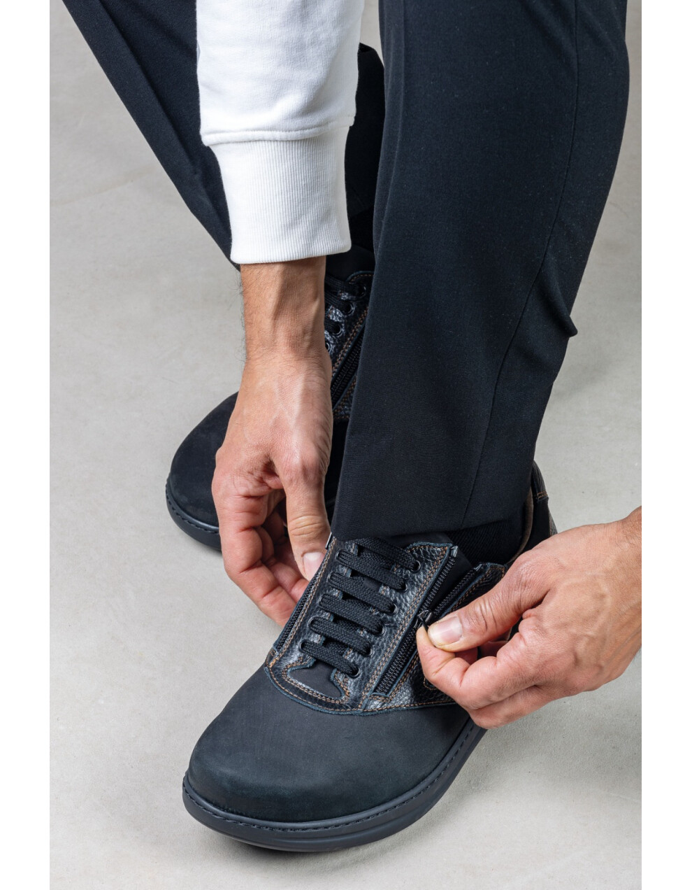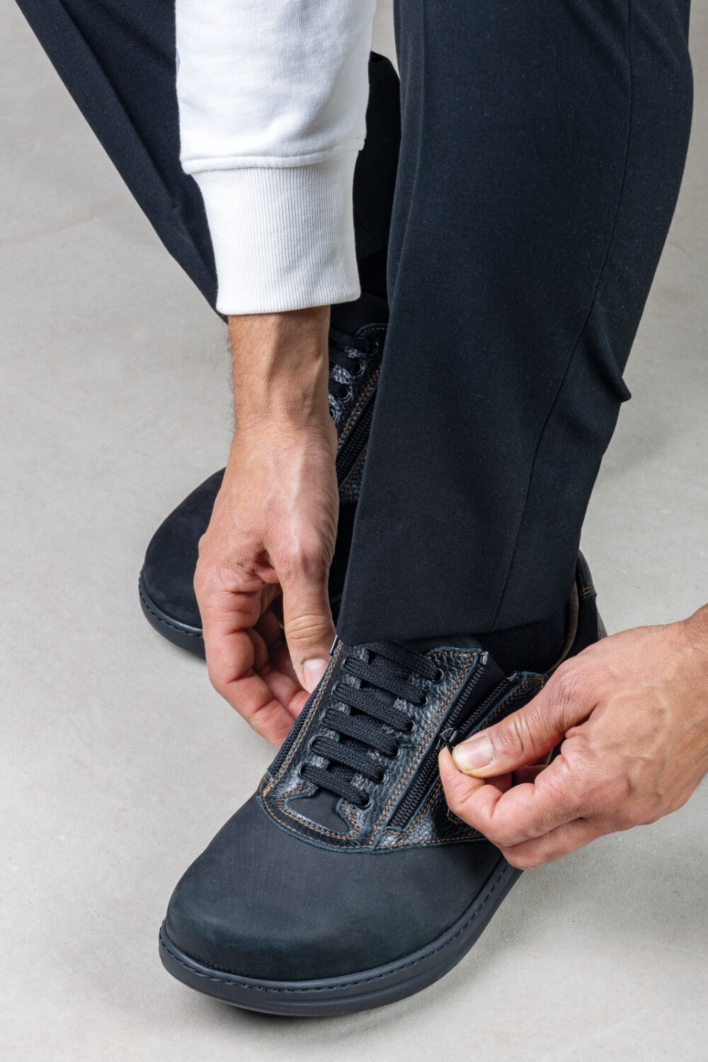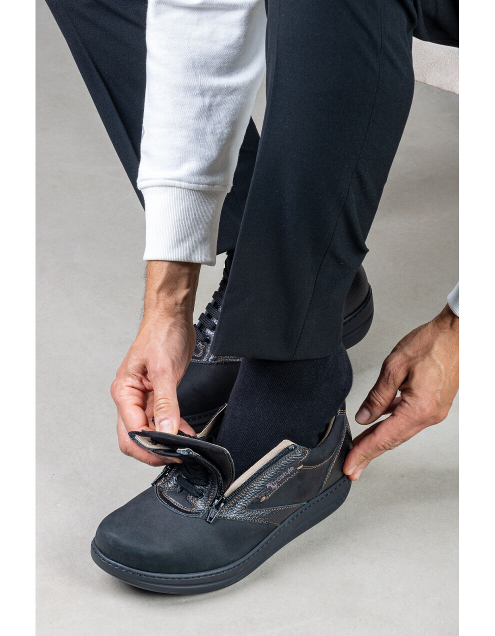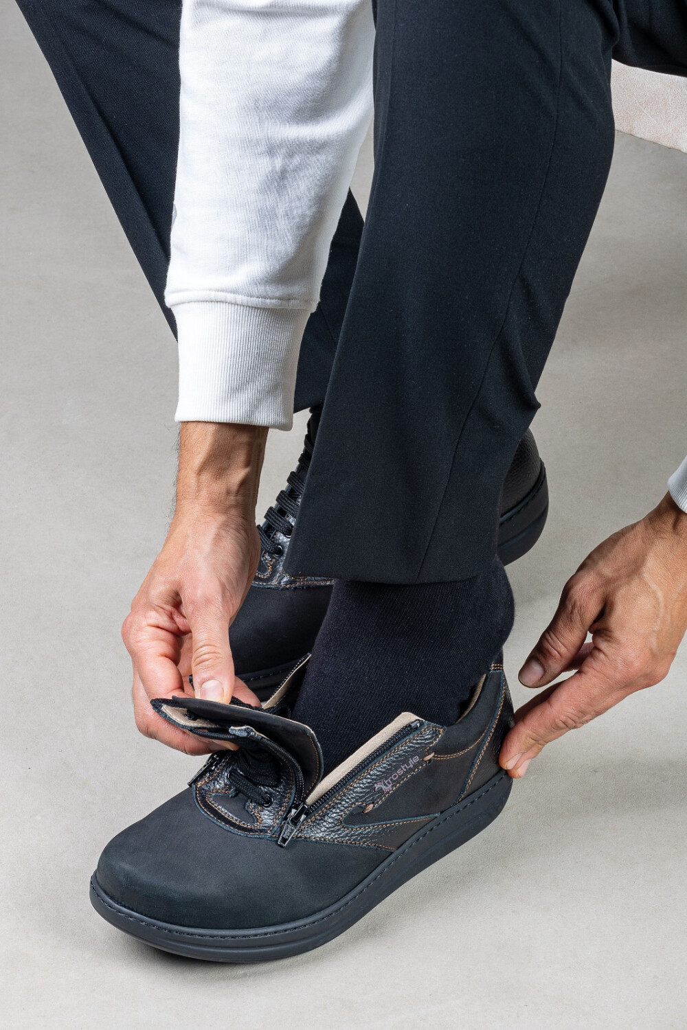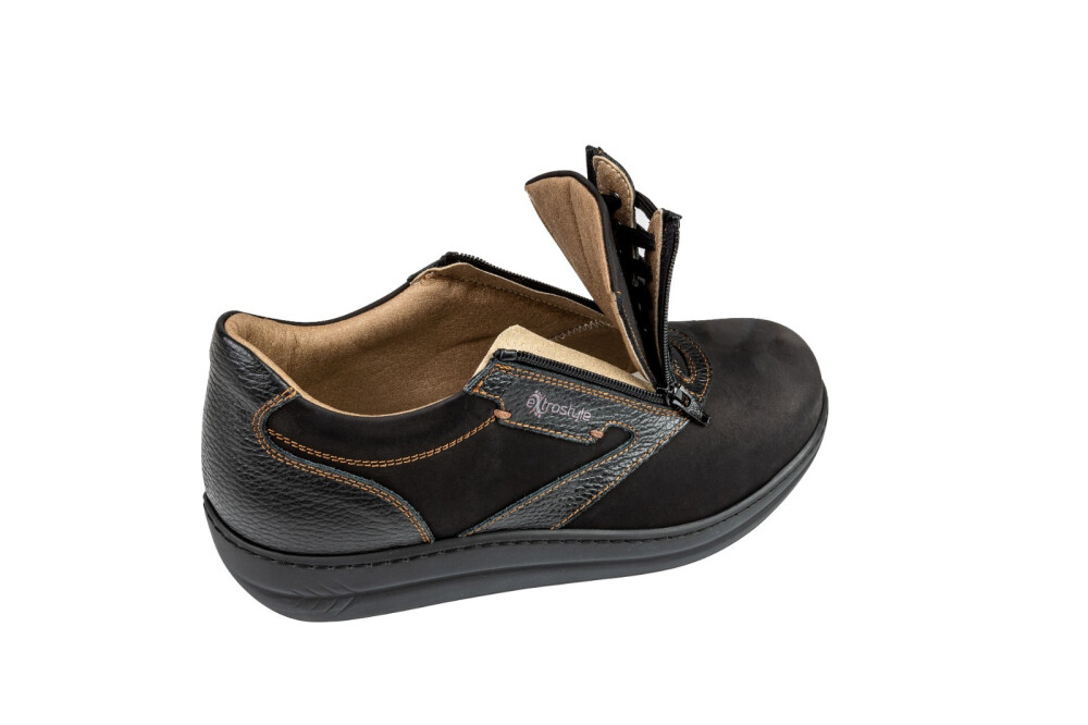 Elegantna obutev THOMAS je primerna za problematična, občutljiva ter otečena ali široka stopala. Obutev nima notranjih šivov in je dodatno oblazinjena iz notranje strani, zaradi česar je izjemno udobna in primerna za občutljiva, visoka in široka stopala. Zapira se z vezalkami, ter dvema zadrgama ob straneh, kar omogoča izjemno prilagodljivost glede oblike ter širine stopala. Ko se enkrat vezalke nastavi na pravo širino se uporabljajo samo zadrge. Posebej primerni so za problematična stopala, otekla stopala in za tiste, ki morajo vstaviti prilagojeni korektivni vložek. Odlično in udobno tudi za vsakodnevno nošenje za pogosto stoječe delo ali za daljše sprehode.