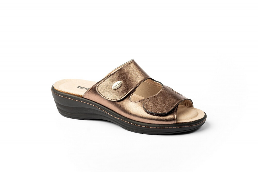 Udoben natikač Mary Bronzo osnovan iz linije Comfort je narejen iz vrhunskih materialov. Na podlagi izkušenj strokovnjakov je izdelan natančno, pozornost je usmerjena na detajle, zato so vsi modeli zasnovani ob popolnem upoštevanju anatomije stopala in imajo anatomski vložek, ki zagotavlja idealno oporo in mehkobo. Čevlji so odlični in udobni tudi za vsakodnevno nošenje, za pogosto stoječe delo ali za daljše sprehode. Zapirajo se z dvema ježkoma.
