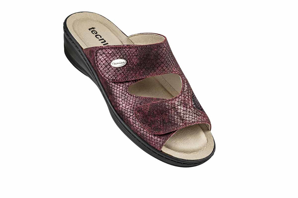 Udoben natikač Mary Bordeaux osnovan iz linije Comfort je narejen iz vrhunskih materialov. Na podlagi izkušenj strokovnjakov je izdelan natančno, pozornost je usmerjena na detajle, zato so vsi modeli zasnovani ob popolnem upoštevanju anatomije stopala in imajo anatomski vložek, ki zagotavlja idealno oporo in mehkobo. Natikači so odlični in udobni tudi za vsakodnevno nošenje, za pogosto stoječe delo. Zapirajo se z dvema ježkoma. Na notranji strani ima všit mehkejši del, ki je namenjen prijetnejšemu stiku z kostjo na palcu. Zelo je primeren tudi za osebe s težavami kot so Hallux valgus oz. izbočen palec. Natikač je primeren tudi za osebe, ki imajo močno stopalo saj so ježki dolgi in široki tako, da ne izvajajo prevelikega pritiska.
