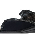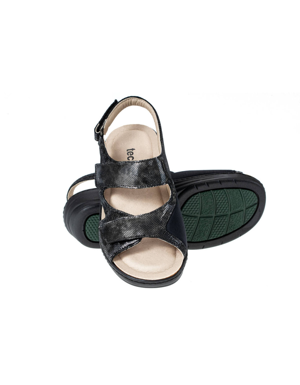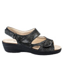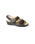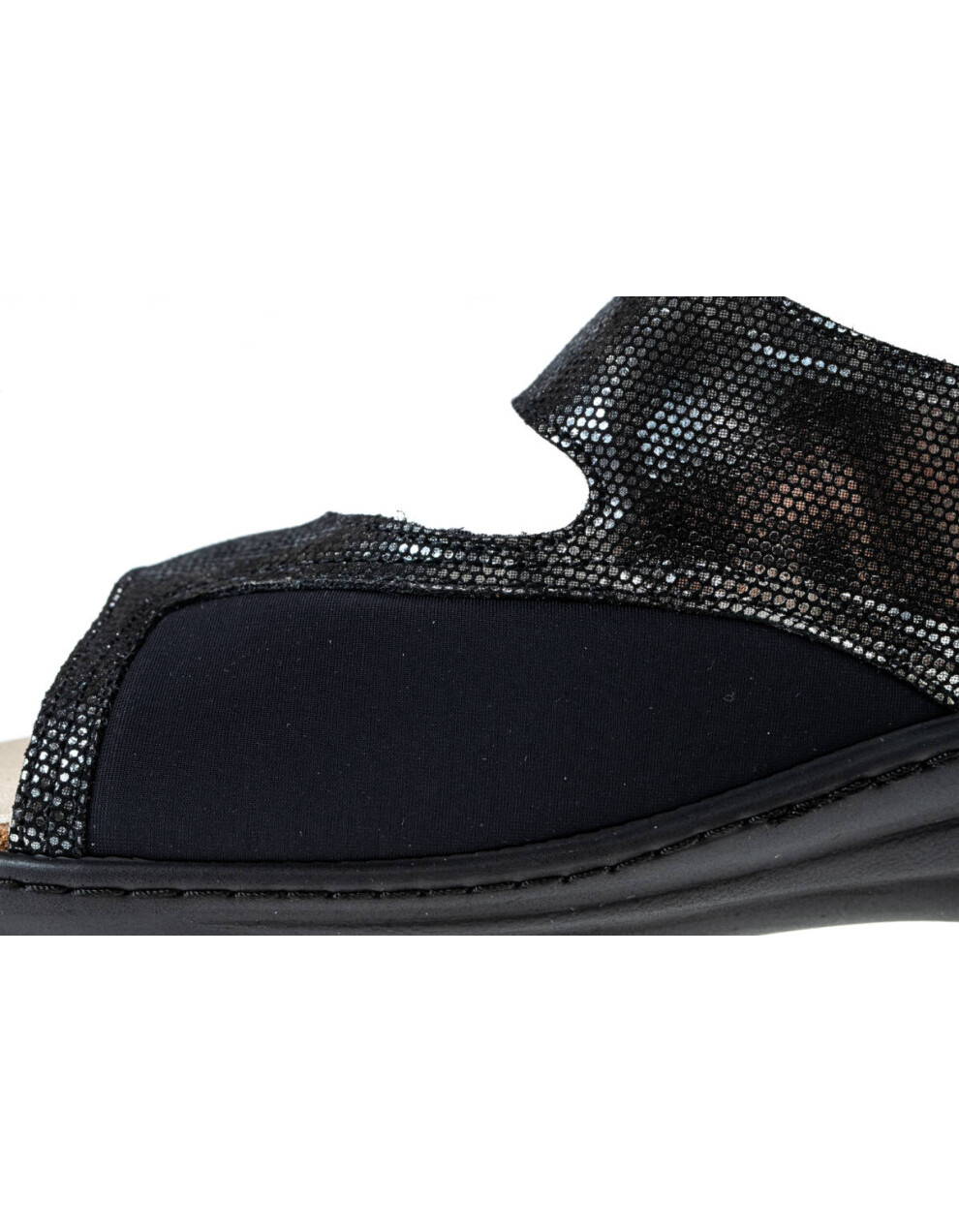 Udoben sandal Angela Nero osnovan iz linije Comfort je narejen iz vrhunskih materialov. Na podlagi izkušenj strokovnjakov je izdelan natančno, pozornost je usmerjena na detajle, zato so vsi modeli zasnovani ob popolnem upoštevanju anatomije stopala in imajo anatomski vložek, ki zagotavlja idealno oporo in mehkobo. Sandali so odlični in udobni tudi za vsakodnevno nošenje, za pogosto stoječe delo ali za daljše sprehode. Zapirajo se z dvema dodatno oblazinjenima ježkoma čez stopalo in enim dodatno oblazinjenim ježkom za popolno prilagotev obutve čez peto. Izjemno udobno zapenjanje.