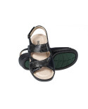 Sandali so narejeni iz prvovrstnega usnja in mikrovlaken ob notranji strani za mehkejši oprijem ter težave z HALLUX VALGUSOM oz. izbočeno kostjo (črn del microfibra) z dvojno šivanim podplatom ter z možnostjo menjave vložka. Deluje antibakterijsko, absorbira vonj in diha. Odlikuje jih izredna kakovost, nedrseč podplat, mehkoba, lahkotnost ter privlačen in moderen dizajn.