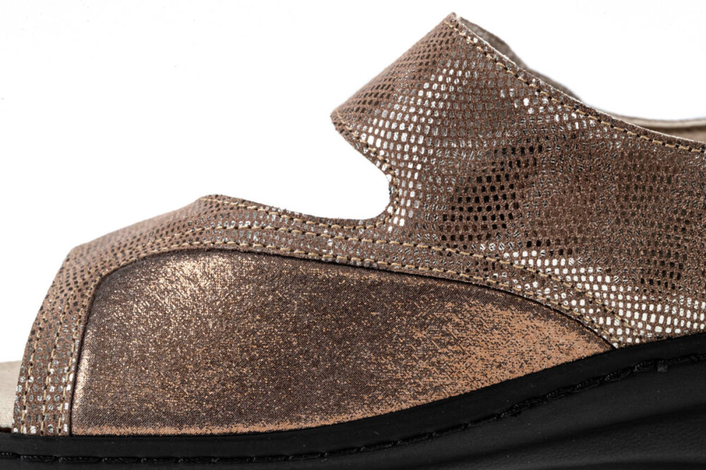 Udoben sandal Angela Sabbia osnovan iz linije Comfort je narejen iz vrhunskih materialov. Na podlagi izkušenj strokovnjakov je izdelan natančno, pozornost je usmerjena na detajle, zato so vsi modeli zasnovani ob popolnem upoštevanju anatomije stopala in imajo anatomski vložek, ki zagotavlja idealno oporo in mehkobo. Čevlji so odlični in udobni tudi za vsakodnevno nošenje, za pogosto stoječe delo ali za daljše sprehode. Zapirajo se z dvema ježkoma čez stopalo in enim ježkom za popolno prilagotev obutve čez peto.