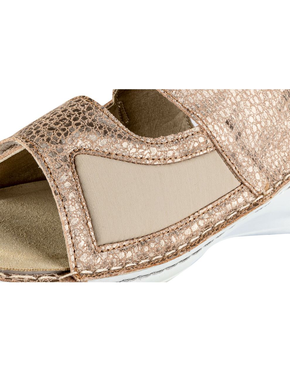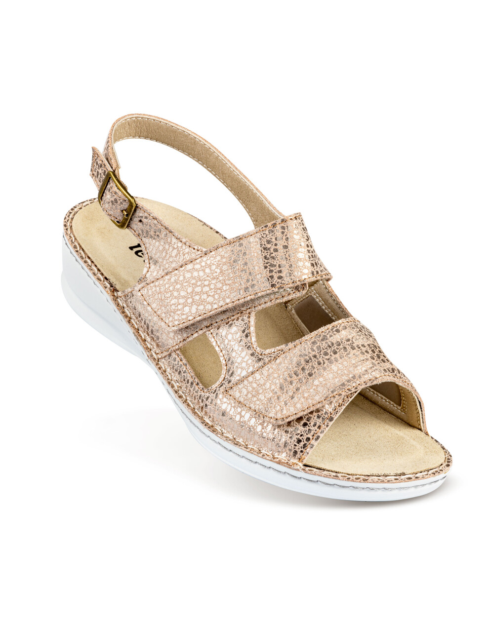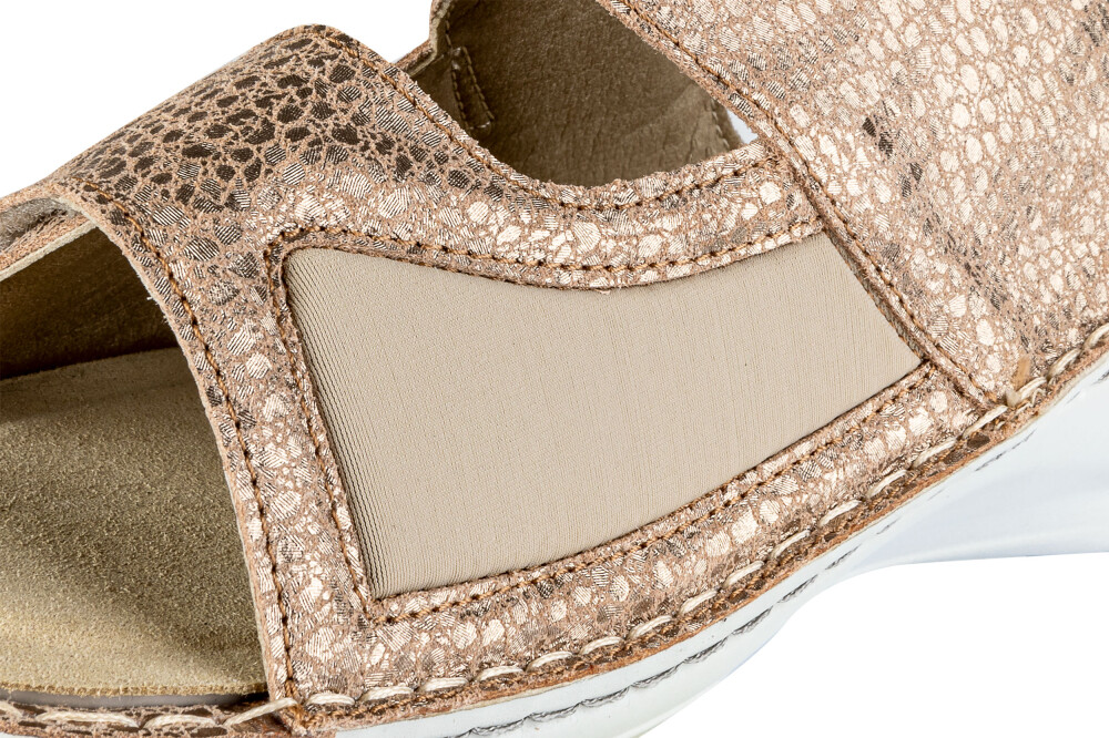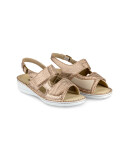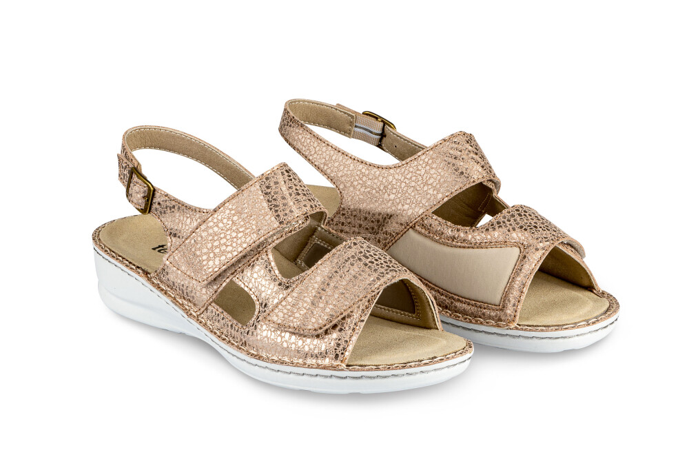 Sandali so narejeni iz prvovrstnega usnja in mikrovlaken ob notranji strani za mehkejši oprijem ter težave z HALLUX VALGUSOM oz. izbočeno kostjo z dvojno šivanim podplatom ter z možnostjo menjave vložka. Deluje antibakterijsko, absorbira vonj in diha. Odlikuje jih izredna kakovost, nedrseč podplat, mehkoba, lahkotnost ter privlačen in moderen dizajn.