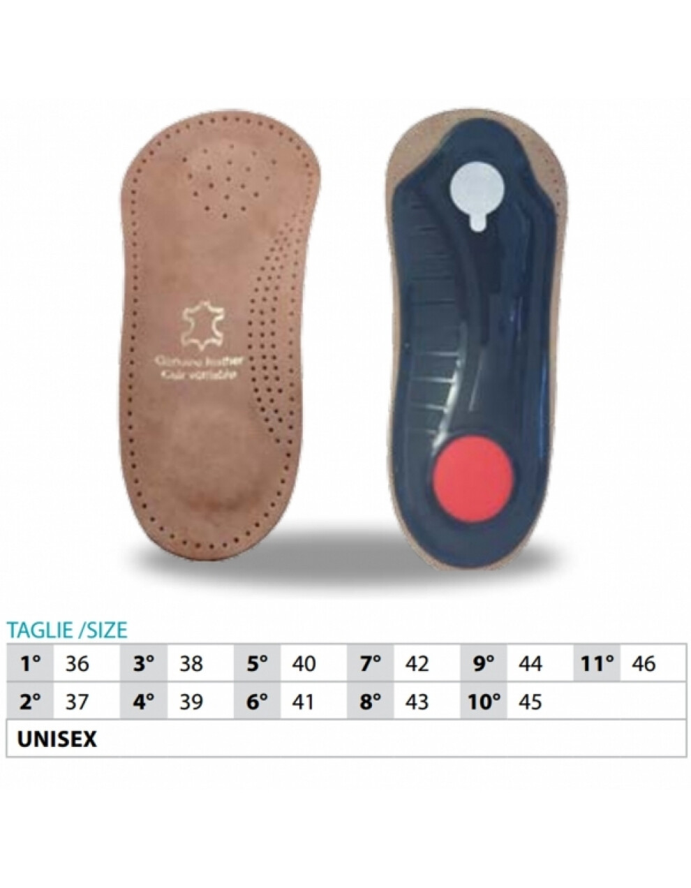 Ortopedski vložki usnjeni za čevlje nudijo izjemno oporo stopalu, preprčujejo potenje nog ter izboljšajo prekrvavitev v predelu stopala. Vložki so visokokvalitetni, primerni so za tiste, ki preživijo veliko časa na nogah, športnike, rekreativce. Lajšajo bolečine v stopalu. Vložki so preoblečeni s pravim usnjem. Ortopedski vložki so registrirani, kot medicinski pripomoček po EU direktivi 93/42/EEC. IZDELANI V ITALIJI.
