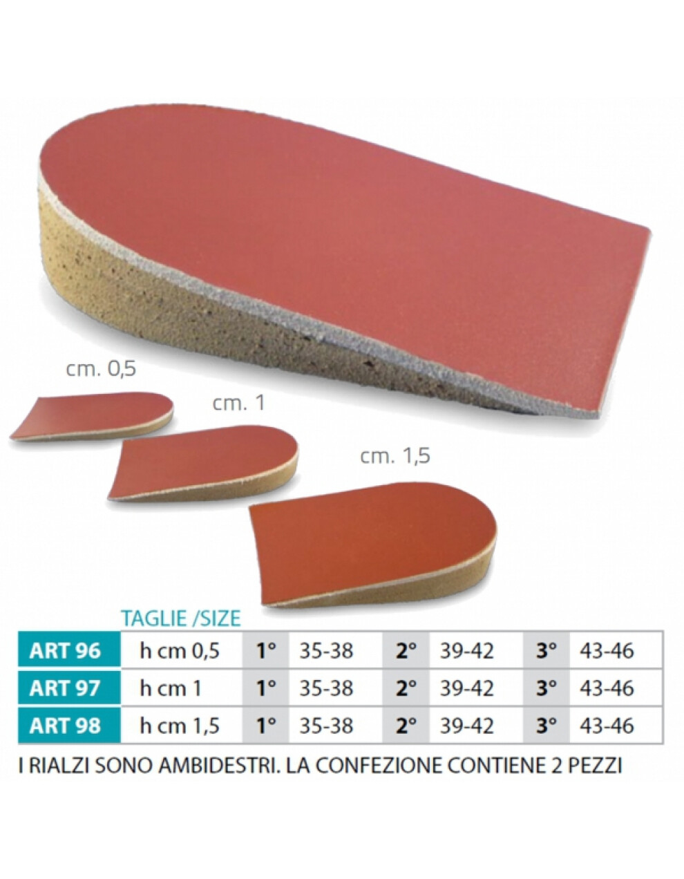 Povišica za čevlje narejena iz plute ter ustnja. Na spodnji strani ima samolepljiv trak za trdnejšo pritrditev v čevelj. Višina te povišice je 0,5 cm