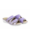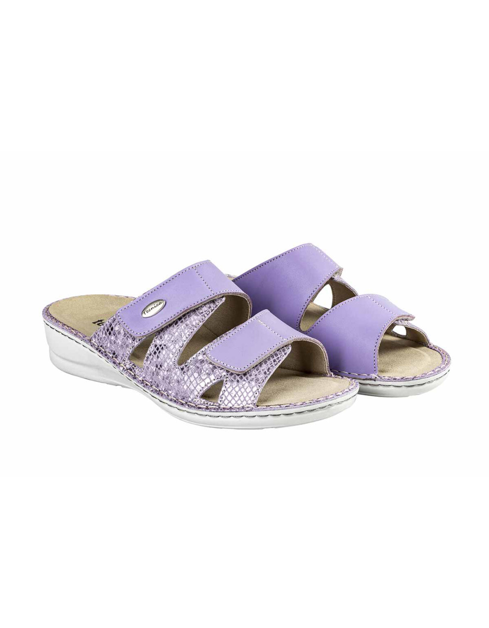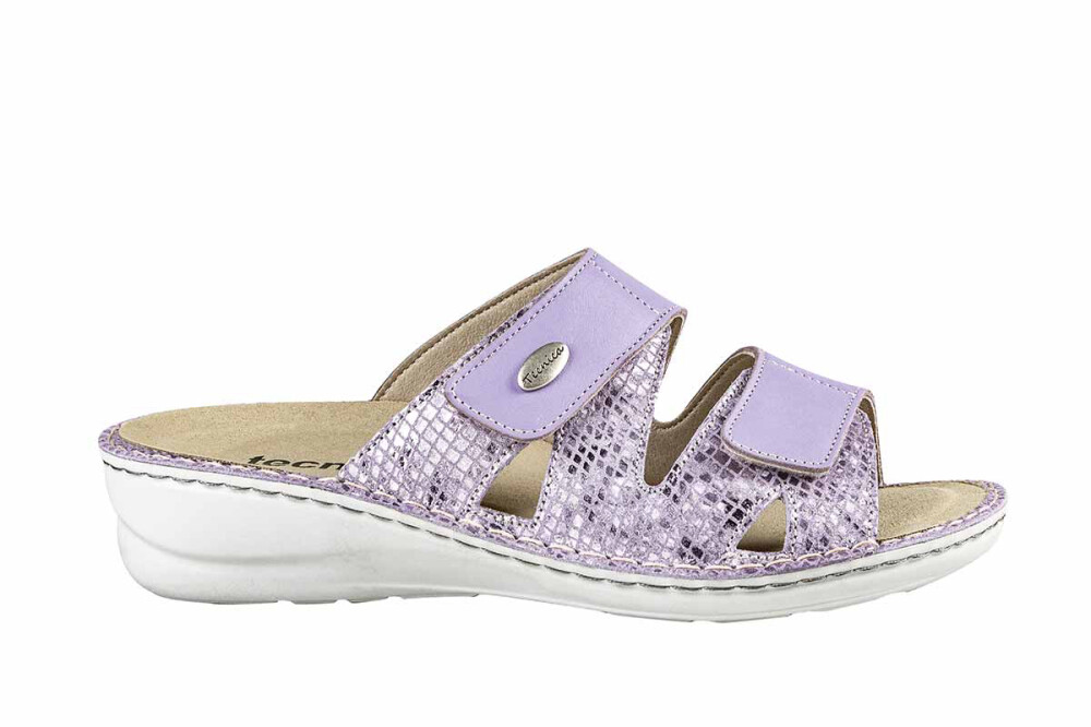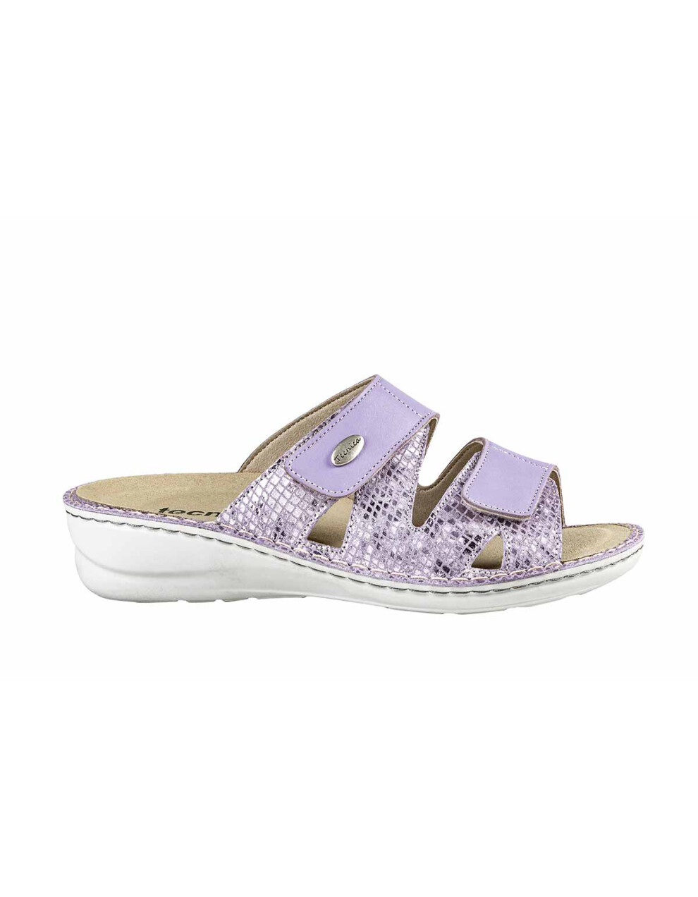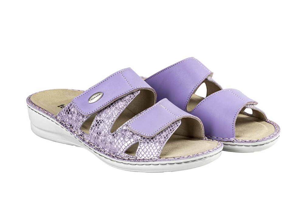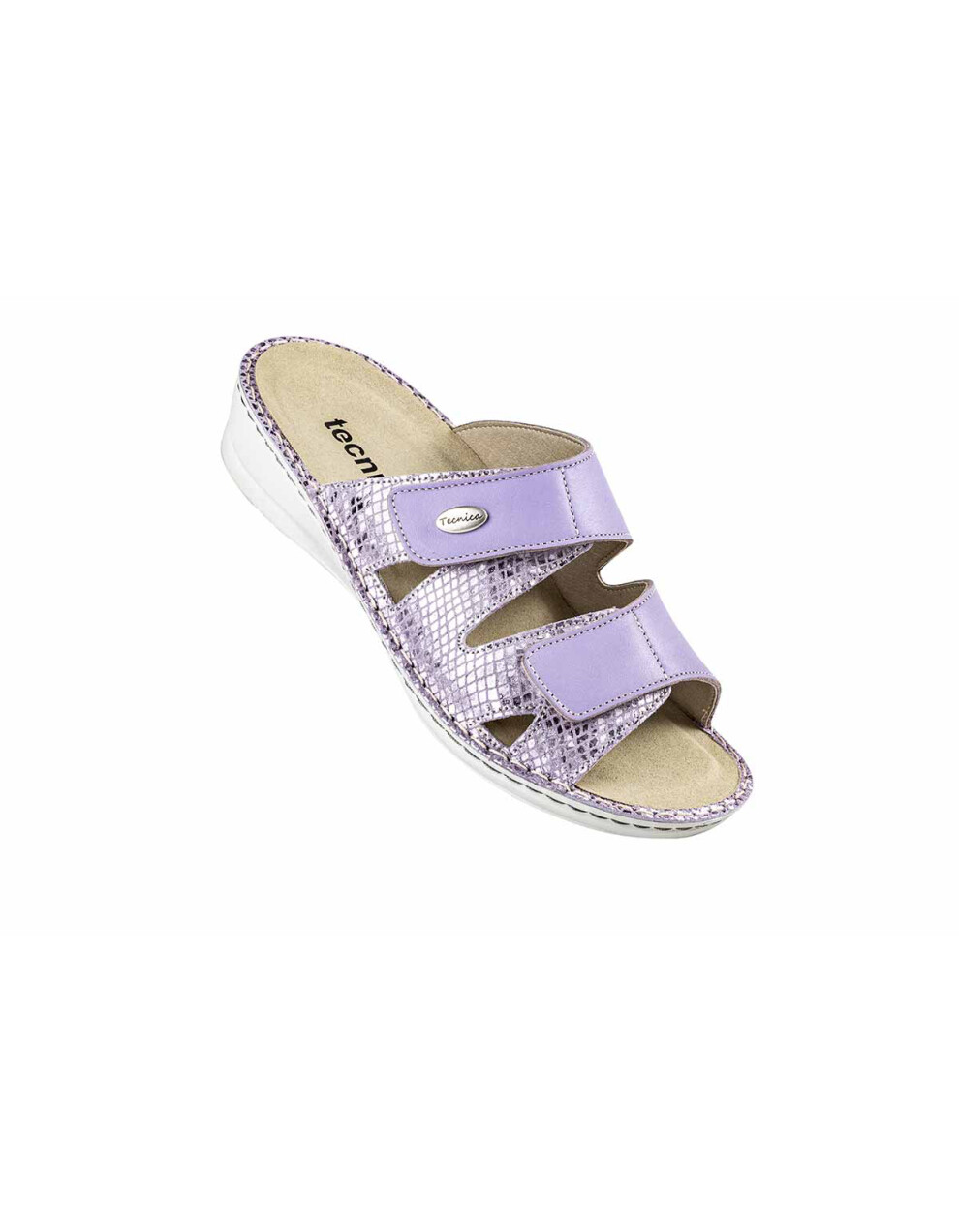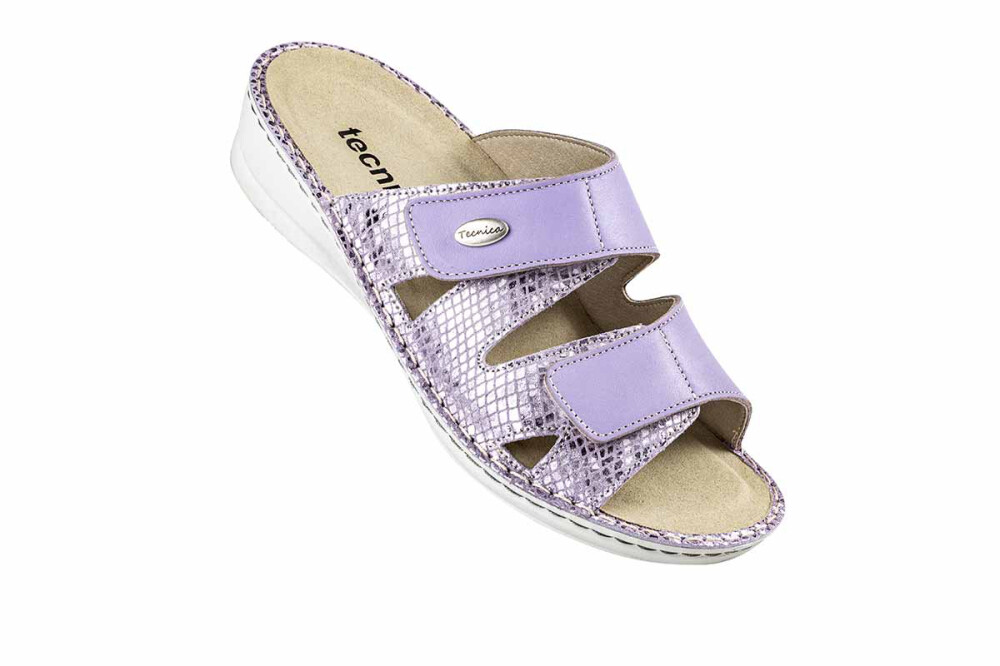 Udoben sandal Tecnica Simona Lilla osnovan iz linije Comfort je narejen iz vrhunskih materialov. Na podlagi izkušenj strokovnjakov je izdelan natančno, pozornost je usmerjena na detajle, zato so vsi modeli zasnovani ob popolnem upoštevanju anatomije stopala in imajo anatomski vložek, ki zagotavlja idealno oporo in mehkobo. Sandali so odlični in udobni tudi za vsakodnevno nošenje, za pogosto stoječe delo ali za daljše sprehode. Zapirajo se z dvema ježkoma čez stopalo. Izjemno udobno zapenjanje.