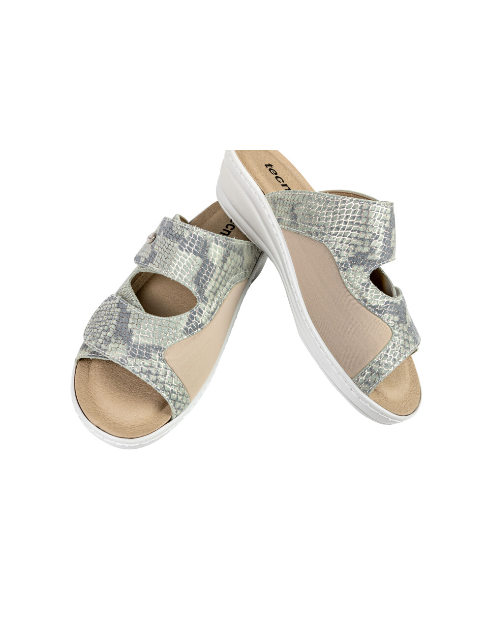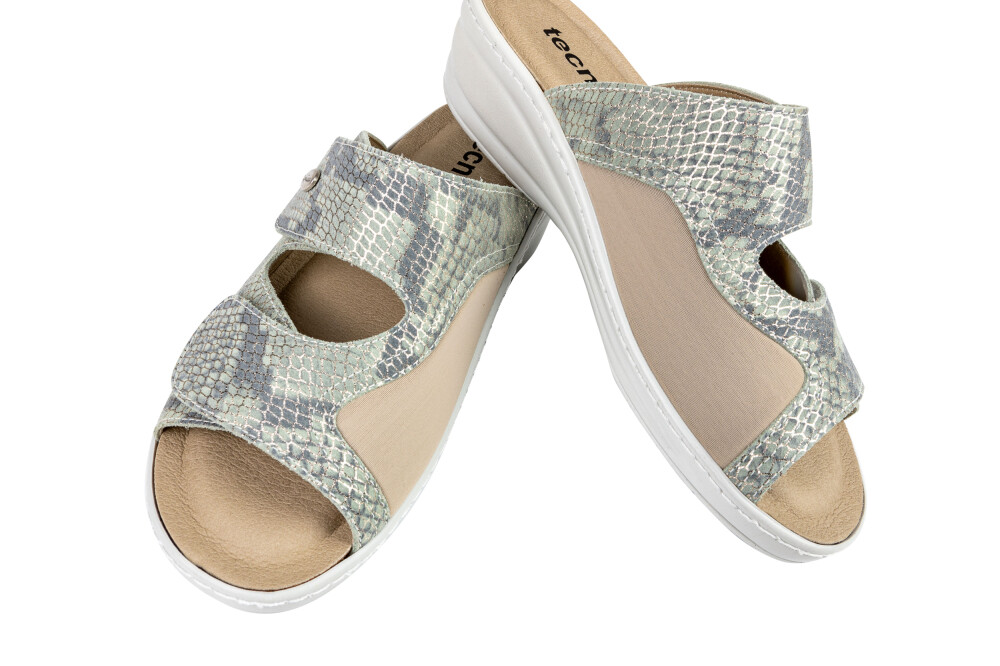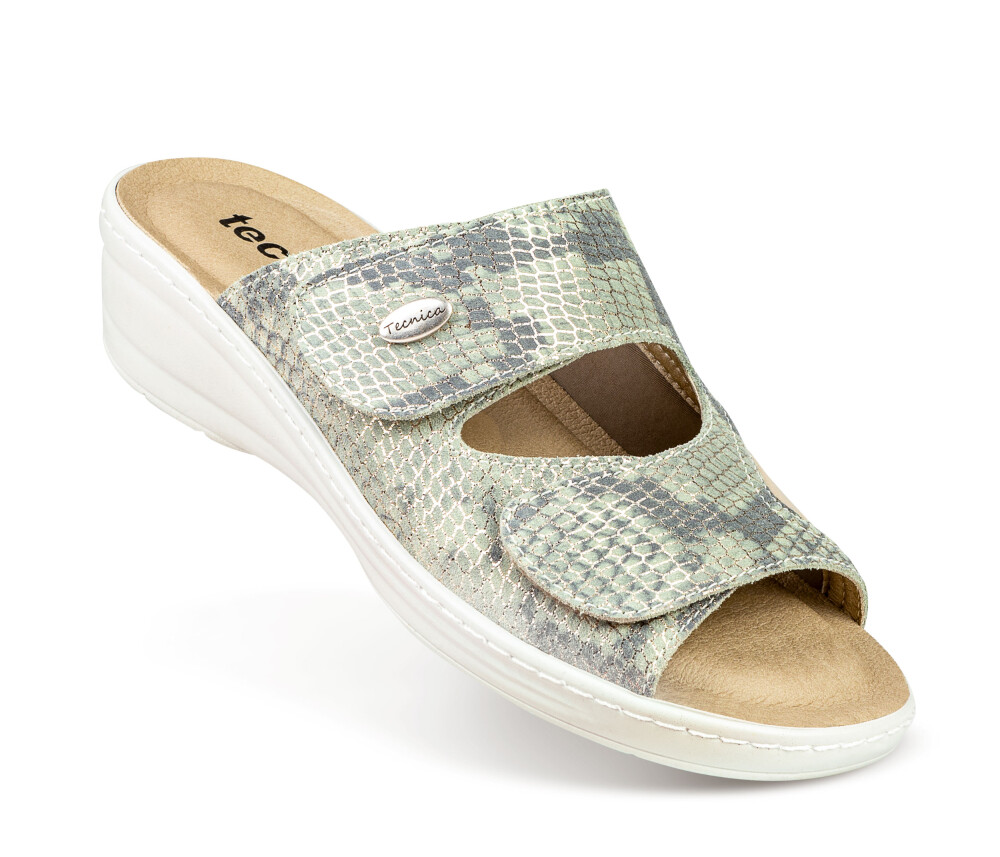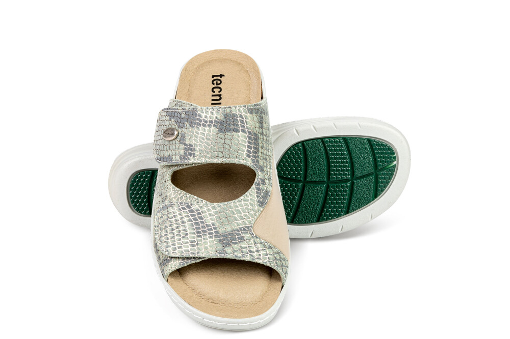 Udoben natikač TECNICA FLORA osnovan iz linije Comfort je narejen iz vrhunskih materialov. Na podlagi izkušenj strokovnjakov je izdelan natančno, pozornost je usmerjena na detajle, zato so vsi modeli zasnovani ob popolnem upoštevanju anatomije stopala in imajo anatomski vložek, ki zagotavlja idealno oporo in mehkobo. Natikači so odlični in udobni tudi za vsakodnevno nošenje, za pogosto stoječe delo. Zapirajo se z dvema ježkoma. Na notranji strani ima všit mehkejši del, ki je namenjen prijetnejšemu stiku z kostjo na palcu. Primeren  je tudi za osebe s težavami kot so Hallux valgus oz. izbočen palec. Natikač je primeren tudi za osebe, ki imajo močno stopalo saj so ježki dolgi in široki tako, da ne izvajajo prevelikega pritiska.