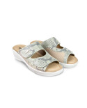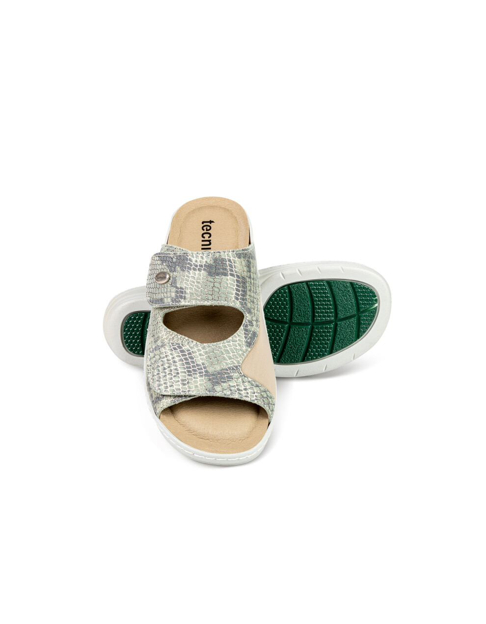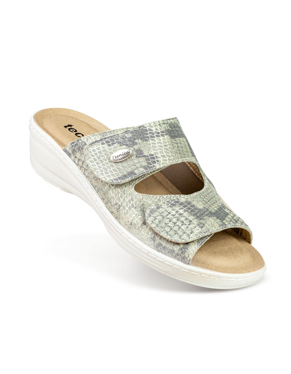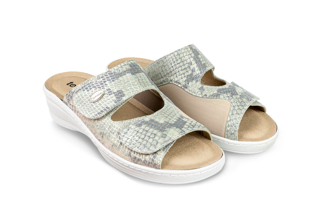 Udoben natikač TECNICA FLORA osnovan iz linije Comfort je narejen iz vrhunskih materialov. Na podlagi izkušenj strokovnjakov je izdelan natančno, pozornost je usmerjena na detajle, zato so vsi modeli zasnovani ob popolnem upoštevanju anatomije stopala in imajo anatomski vložek, ki zagotavlja idealno oporo in mehkobo. Natikači so odlični in udobni tudi za vsakodnevno nošenje, za pogosto stoječe delo. Zapirajo se z dvema ježkoma. Na notranji strani ima všit mehkejši del, ki je namenjen prijetnejšemu stiku z kostjo na palcu. Primeren  je tudi za osebe s težavami kot so Hallux valgus oz. izbočen palec. Natikač je primeren tudi za osebe, ki imajo močno stopalo saj so ježki dolgi in široki tako, da ne izvajajo prevelikega pritiska.